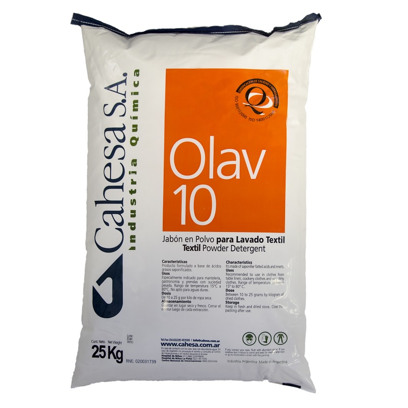 Jabón de cebo de alta espuma. Alto rendimiento en manchas grasas sobre algodón y poliéster.