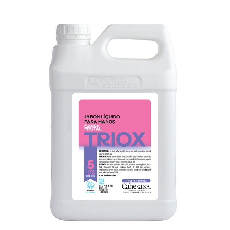 Descripción: Jabon líquido para el lavado de manos, pH balanceado para brindar máxima suavidad. Características: Limpieza profunda, pH balanceado que brinda gran suavidad a las manos, agradable fragancia, fácil de enjuagar. Presentación: Bidón x 5 lts
